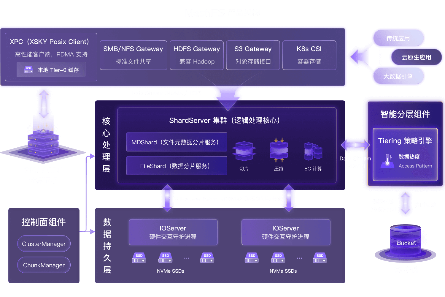Tier-0 缓存层瞬间吸收大流量,后台异步刷盘,将 GPU 等待时间压至秒级。