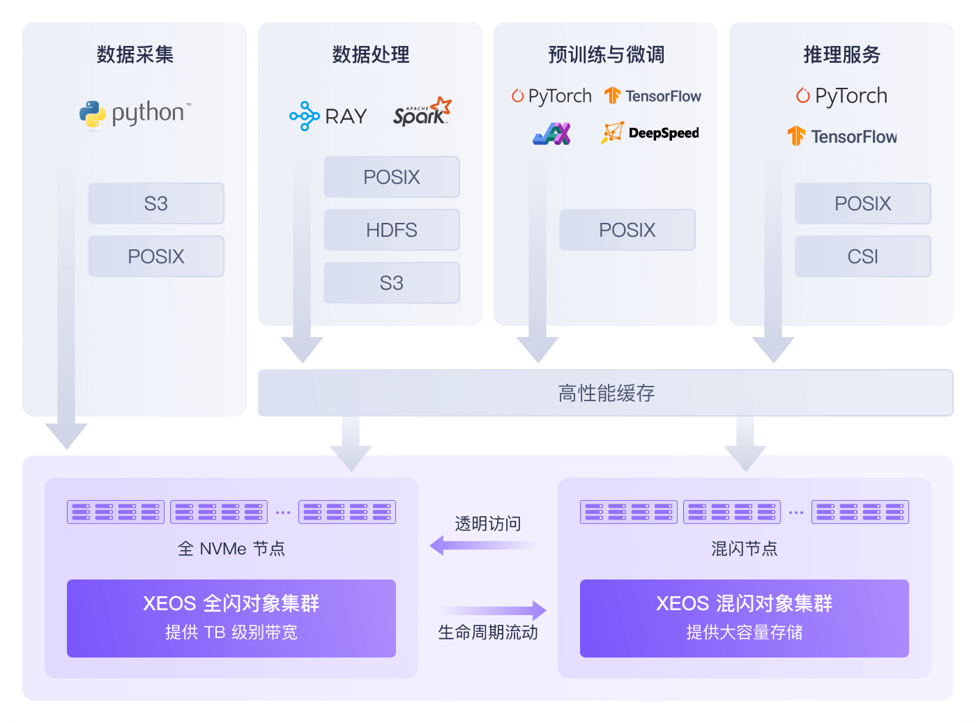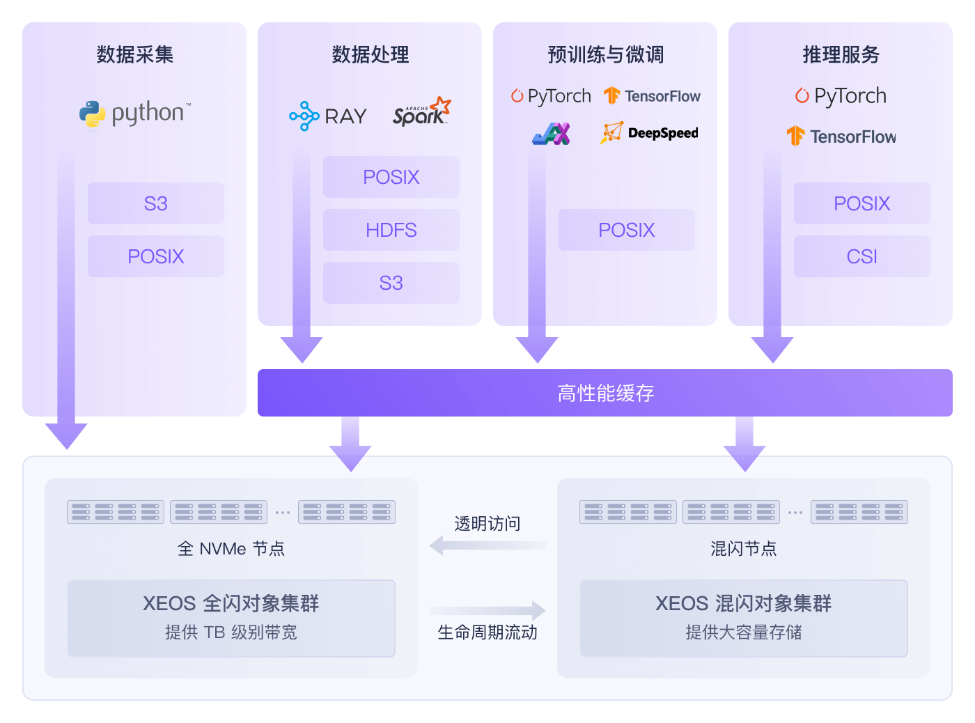 在进行万亿参数模型训练时,频繁的 Checkpoint 写入耗时过长(超过 30 分钟),导致训练中断恢复成本高昂,且海量训练语料(数亿小文件)的读取效率低下,GPU 平均利用率不足 50%。